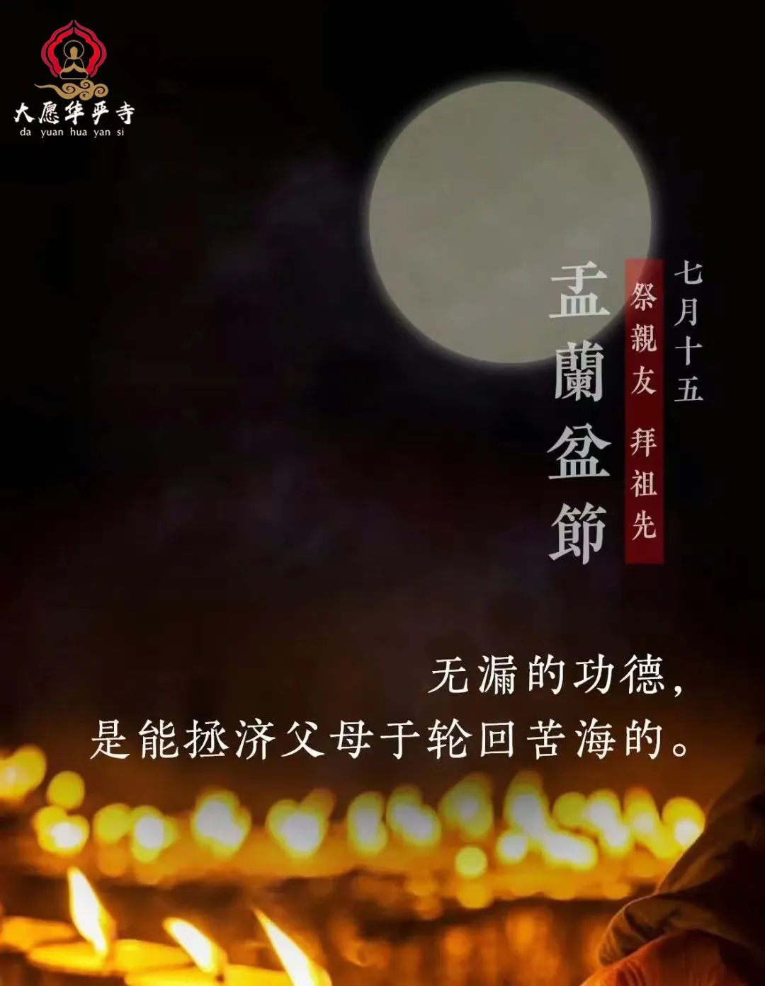 佛教中农历七月是孝亲报恩、祈福修善的“吉祥月”、“报恩月”、“孝亲月”。